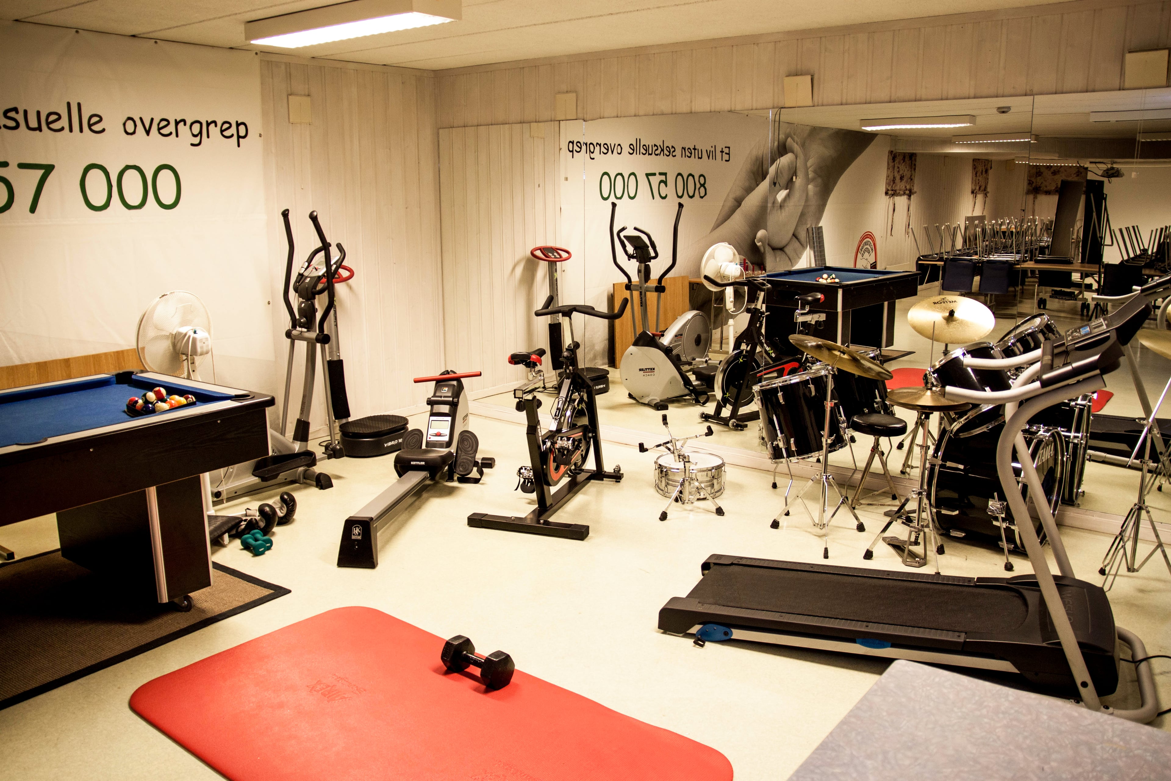 Kjeller: Gymsal og dusjrom med flere dusjer.